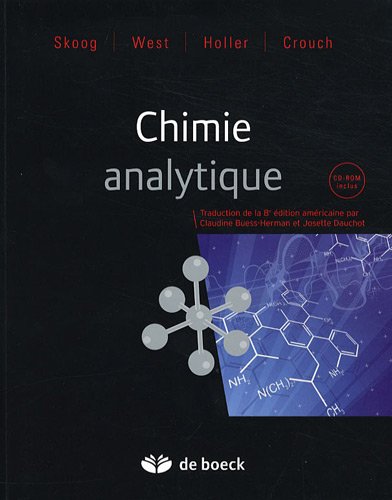 Description du livre Chimie analytique : ~ Un classique de la chimie analytique: Cet ouvrage, devenu un classique de la chimie analytique, a la particularité de proposer un enseignement des principes fondamentaux de la chimie, associé à une description de la pratique de laboratoire. ~ Des concepts fondamentaux aux techniques d'analyse: Ce livre comprend 37 chapitres regroupés en 7 parties, offrant ainsi une base modulaire particulièrement adaptée à tout cours de chimie analytique. La première partie discute des modalités d'une analyse et développe les concepts indispensables à l'évaluation des performances de celle-ci. Le coeur de l'ouvrage présente les méthodes classiques d'analyse ainsi qu'une gamme étendue de techniques analytiques modernes qui se basent sur des considérations théoriques et pratiques. La dernière partie comprend trois chapitres traitant des procédures relatives à l'analyse d'échantillons réels. Les nouveautés de la 2e édition: Cette nouvelle édition présente les particularités suivantes: l'introduction tout au long de l'ouvrage d'outils informatiques actuels pour le traitement de données, une interview d'une personnalité scientifique reconnue au début de chaque partie, de nombreuses applications dans des domaines tels que la biologie, la médecine, la science des matériaux, l'écologie, ou encore la criminalistique, de nombreuses illustrations telles que photographies et modèles moléculaires. ~ Des outils pédagogiques: Les exemples numériques, les notes en marge, le glossaire, le grand nombre de questions et de problèmes ainsi que les recherches sur Internet sont des outils pédagogiques puissants mis à la disposition des étudiants.